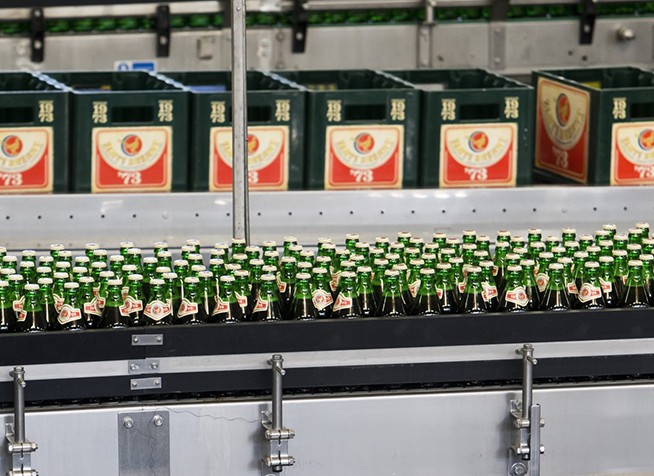A major part of proper filling of bottles, cans and barrels with beer is to avoid escape of carbon dioxide from this golden fluid. After filling, beer goes through pasteurization in order to devitalize yeast that remained in it after filtration. This process takes about one hour and ranges from temperatures the beer had at its filling up to pasteurization temperature of 62 °C.