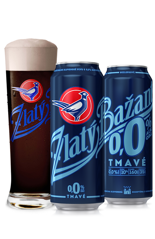 Zlatý Bažant 0,0% Dark beer is the first Slovak dark beer without any alcohol. This innovation is brewed using 4 different types of malt: pale pilsner, caramel, munich and color malt. The right selection of malts gives the first Slovak dark beer without any alcohol its intense malty taste and aroma with the notes of roasted malt. It is brewed using a method of cold fermentation at a very low temperature, due to which the yeast does not produce any alcohol and the final beer keeps its full beery taste.